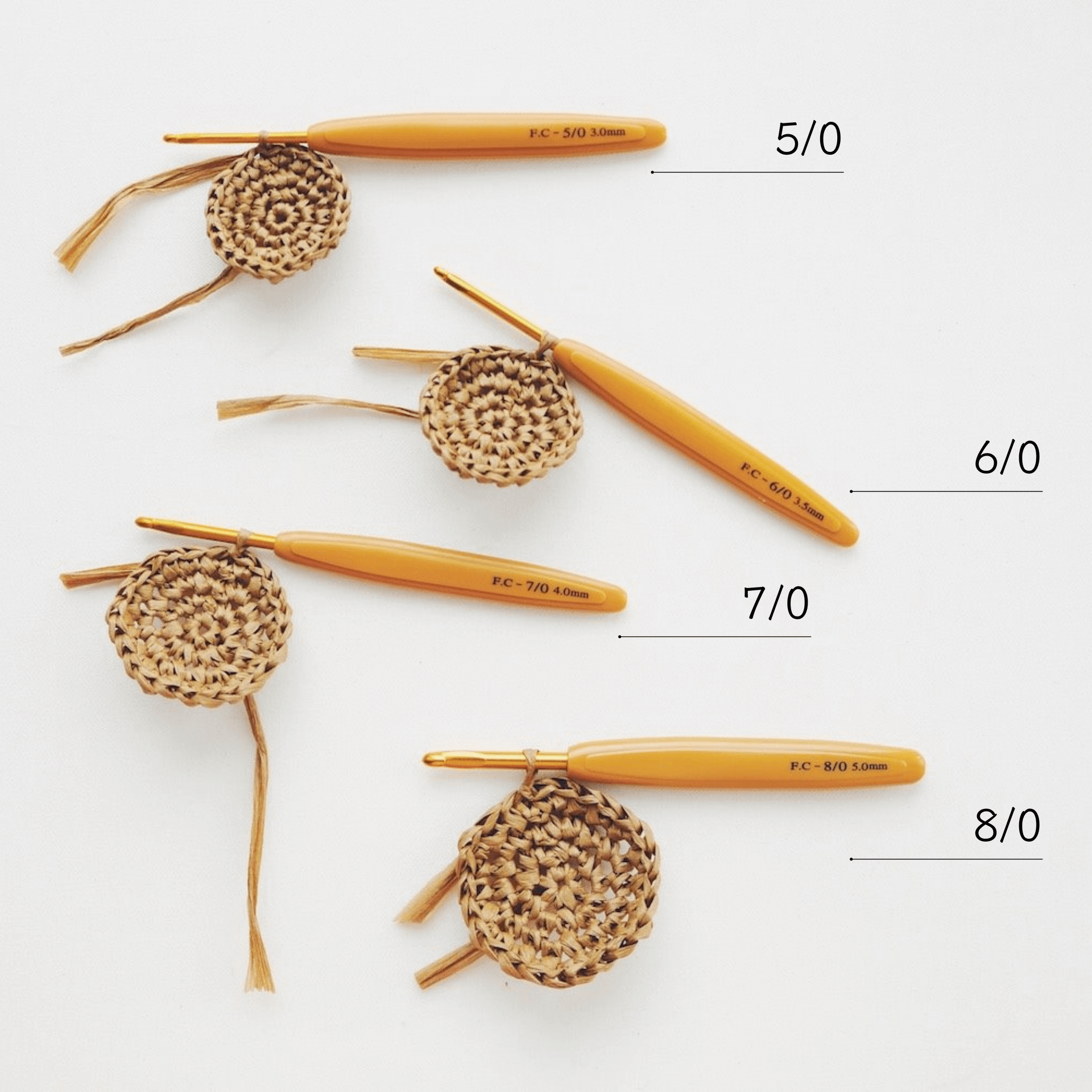 初學者通常從中等尺寸(如4mm至6mm)的針開始,因為這種尺寸會更容易掌握,適合多種線材和作品。總結就是,購買時還請多多參考包裝上的推薦線材粗細,等到熟練了再來進行變化唷。